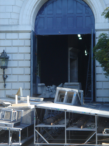 The performance looked full, and standing room had quite a few people. A woman stood behind me for the second half of the opera, and apparently she had an imaginary friend. She spoke at full volume about "how cool" the Nibelheim was and "how cute" Alberich was as an amphibian. Then before Scene 4 she started furiously typing on her Blackberry and was given 3 pointed, angry looks before she scurried away.