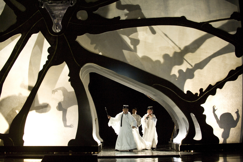 Kip Cranna moderated a panel discussion on the new opera The Bonesetter's Daughter yesterday evening at Herbst Theatre. The panelists included composer Stewart Wallace, bass Hao Jiang Tian (Chang the Coffin Maker), and suona-player/rock star Wu Tong (Chef, Taoist Priest). There is much excitement surrounding the impending world premiere of the work at San Francisco Opera, only the ninth in the company's history. The evening began with a bunch of plugs for the book the opera is based on, the memoir of the bass, and most interestingly, the book on the making of this opera, Fate! Luck! Chance! by Ken Smith. The latter includes the libretto.