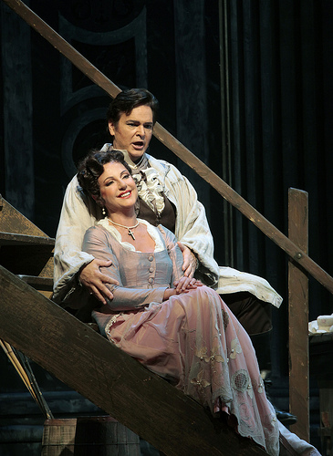 For the most part, the orchestra was unobtrusive under Edoardo Müller. The horns sounded ragged in the overture, and there were a few times when the orchestra and singers were slightly off in Act I.