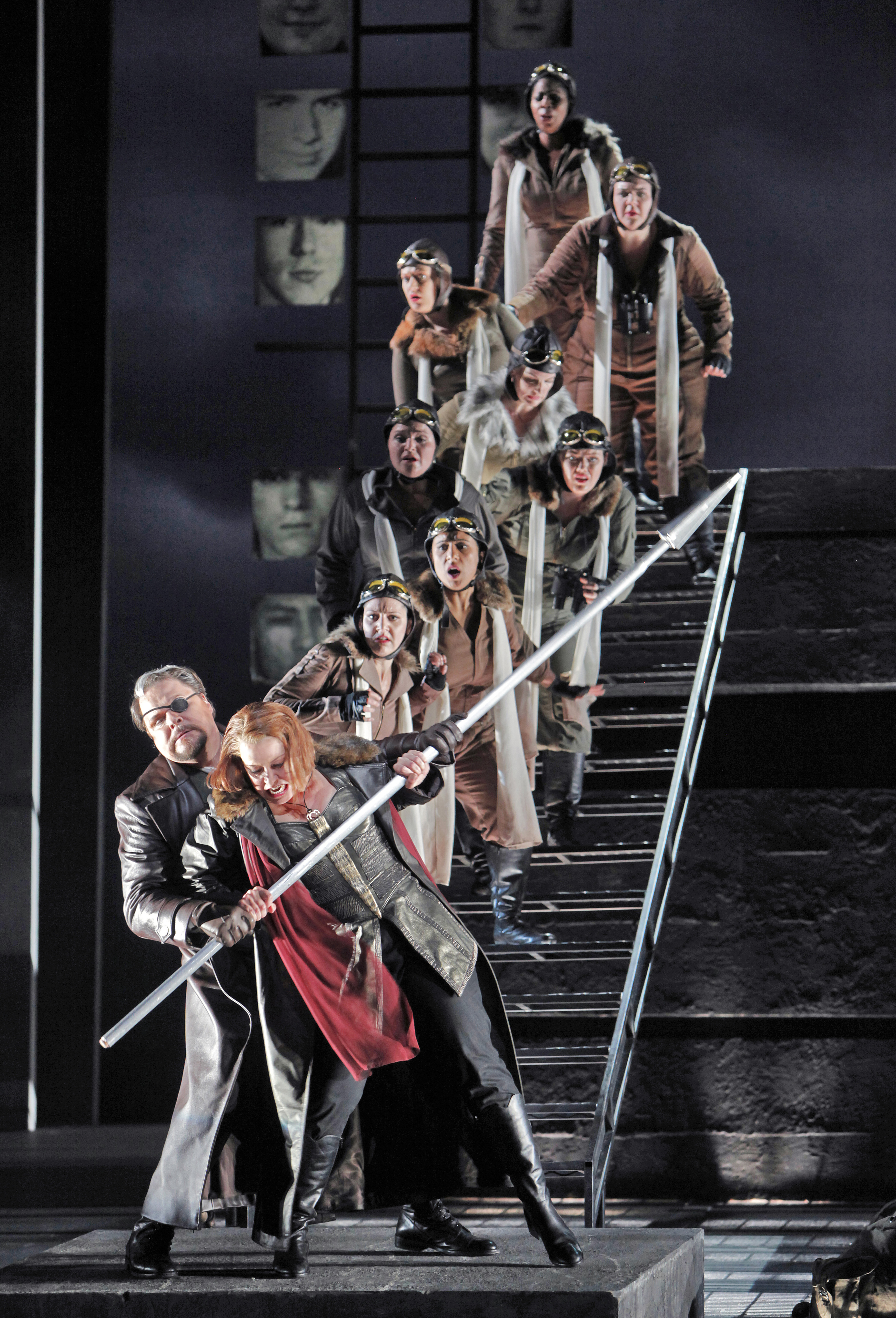 Mark Delavan (Wotan) and Nina Stemme (Brünnhilde) with the Valkyries, photo by Cory Weaver * Notes *