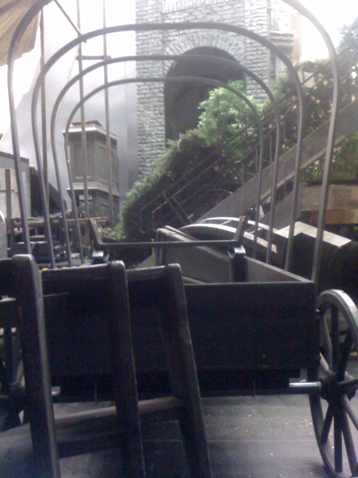 Landmesser took us on a backstage tour, and we even got to stand on the set of Fanciulla. We learnt that they were not entirely sure they were going to get the set until April 2 of this year, when it was shipped from Palermo. The set looked nice from close up, the rock wall is sculpted nicely, one side being red, the other being white, for the different acts. We had to leave the stage so that the ballroom brawl could be rehearsed, evidently they rehearse it each time before the performance.