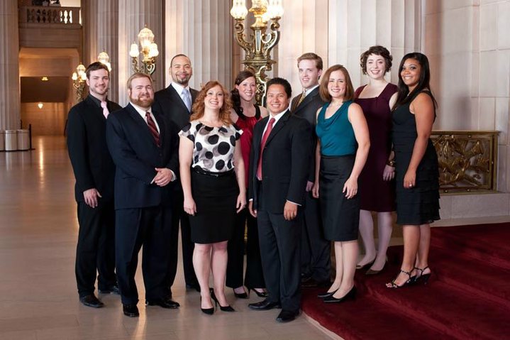 This year's Day at Merola was Tuesday, beginning with a lunch in Lower Level Café of the War Memorial Opera House. A couple of members of the Opera Standees Association who are also sponsors of tenor Alexander Lewis kindly invited me to join their table. Mr. Lewis conversed with us about how he stayed in Jane Eaglen's house as a kid, his voice changing, The Ring, countertenors, and Mozart. It was especially endearing when he related his realization that as a tenor rather than a baritone there was no role for him in Le Nozze di Figaro. Alex is going to move to New York soon, to participate in the Metropolitan Opera's Lindemann Young Artist Development Program. At lunch I also had the pleasure of meeting Kevin Thompson, the one bass of the Merola Program this summer.