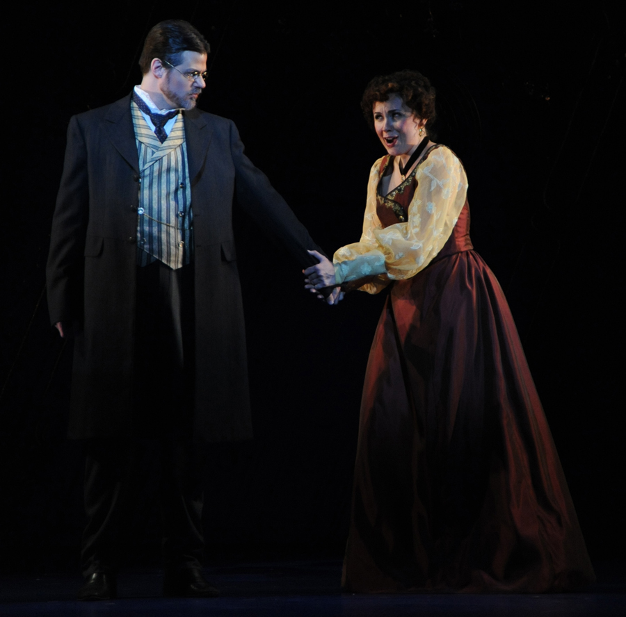 The singing was uniformly fine. Kindra Scharich stood out in the small role of Countess Lydia Ivanova, her voice is warm and lovely. Christopher Bengochea (Stiva Oblonsky) and Michael Dailey (Konstantin Levin) also offered strong performances. Krassen Karagiozov was not quite dashing enough as Vronsky, but he did sing nicely. Jasmina Halimic made a pretty Anna, and she did sound very sweet. There were a few times when she gasped or cracked slightly. Karenin seemed the most fleshed out character, his motivations were clear, and Kirk Eichelberger portrayed him beautifully.