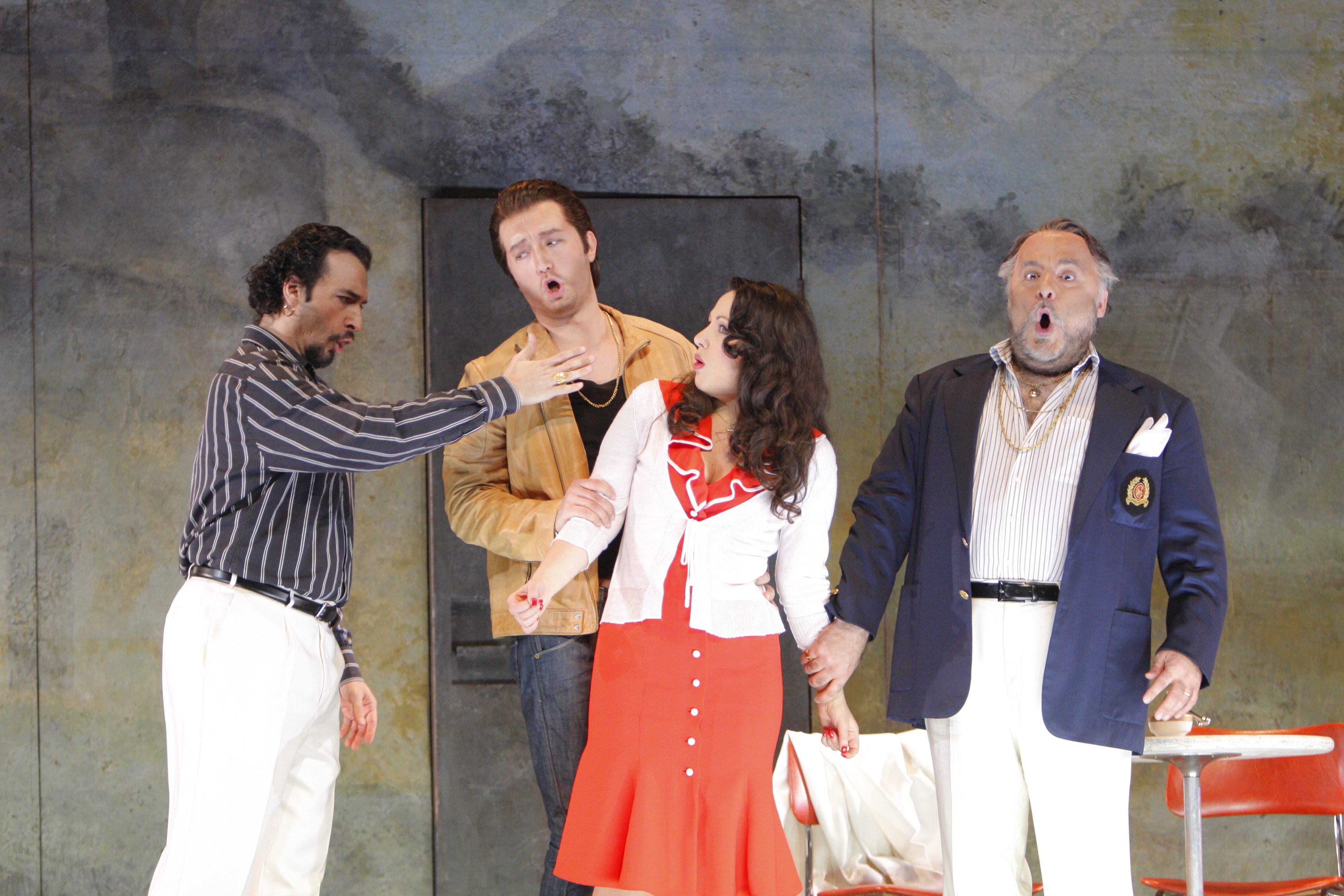 As Fiorella, Nino Machaidze looked stunning, and sang well. Her voice has a penetrating quality to it, just bordering on shrill. Simone Alberghini (Selim), the Turk of this opera, was comic and his voice had good volume. He does have a lot of vibrato, but this was fine for this role.