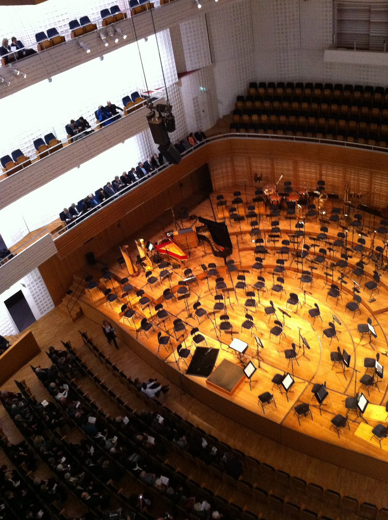 Yesterday Jonathan Nott conducted Luzerner Sinfonieorchester in a program of Arvo Pärt, Sofia Gubaidulina, and Dmitri Shostakovich. Pärt’s Cantus in Memory of Benjamin Britten was haunting, played with a certain tenderness, and even warmth. This was followed by the Gubaidulina’s Concert for Violin und Orchestra “In tempus praesens.” The soloist, Vadim Gluzman, played with fire with the orchestra buzzing and humming along. After the intermission came a tastefully played Symphony No. 15 by Shostakovich. There were two or three times when the horns had to play in unison and sounded cloudy, but for the most part the brass was clear and vibrant. The first cello and the concertmaster were particularly striking, as were the percussionists.