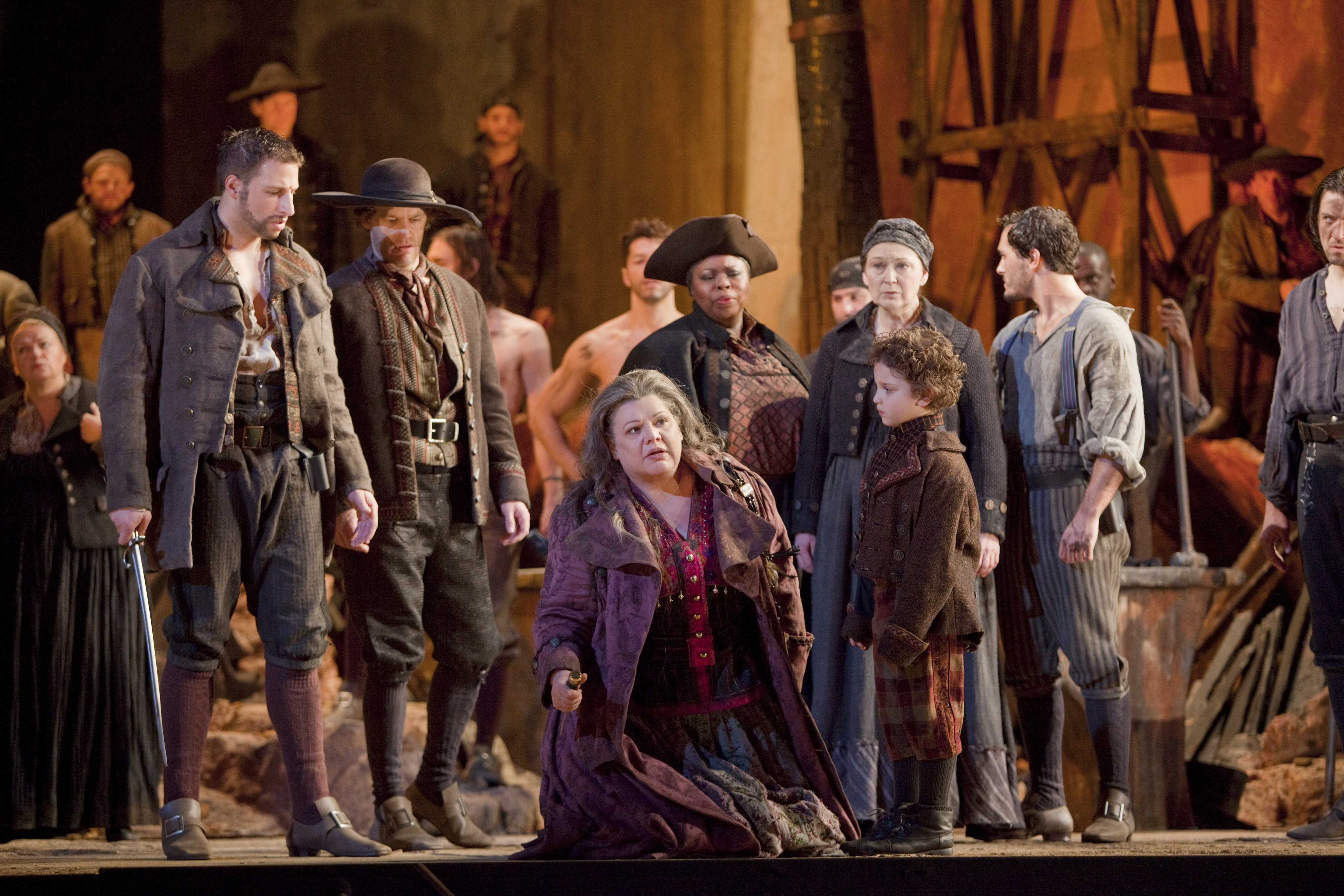 Conductor Marco Armiliato had the orchestra sounding spirited. The racing tempi were infused with energy. The dynamics were not always dramatic, at times pianissimo was not terribly distinct from forte. Stefan KocΓ‘n was a dry Ferrando, but with good volume. I had trouble hearing Maria Zichak's musical line as Inez when she sang with Sondra Radvanovsky (Leonora) and the orchestra in Part I. The latter interpreted the emotional content of the text with clarity, and could always be heard. Dmitri Hvorostovsky (di Luna) has a lovely timbre but has a tendency to gasp when breathing. While Marcelo Γlvarez was plaintive as Manrico, he almost seemed to choke on a note in "Ah, sΓ¬ ben mio." Perhaps this was intentional, it did give this reviewer a physical sensation of being strangled. Dolora Zajick (pictured above, Β© Ken Howard/Metropolitan Opera) was most impressive as Azucena. The madness of the character came through, with passion and without ugliness.