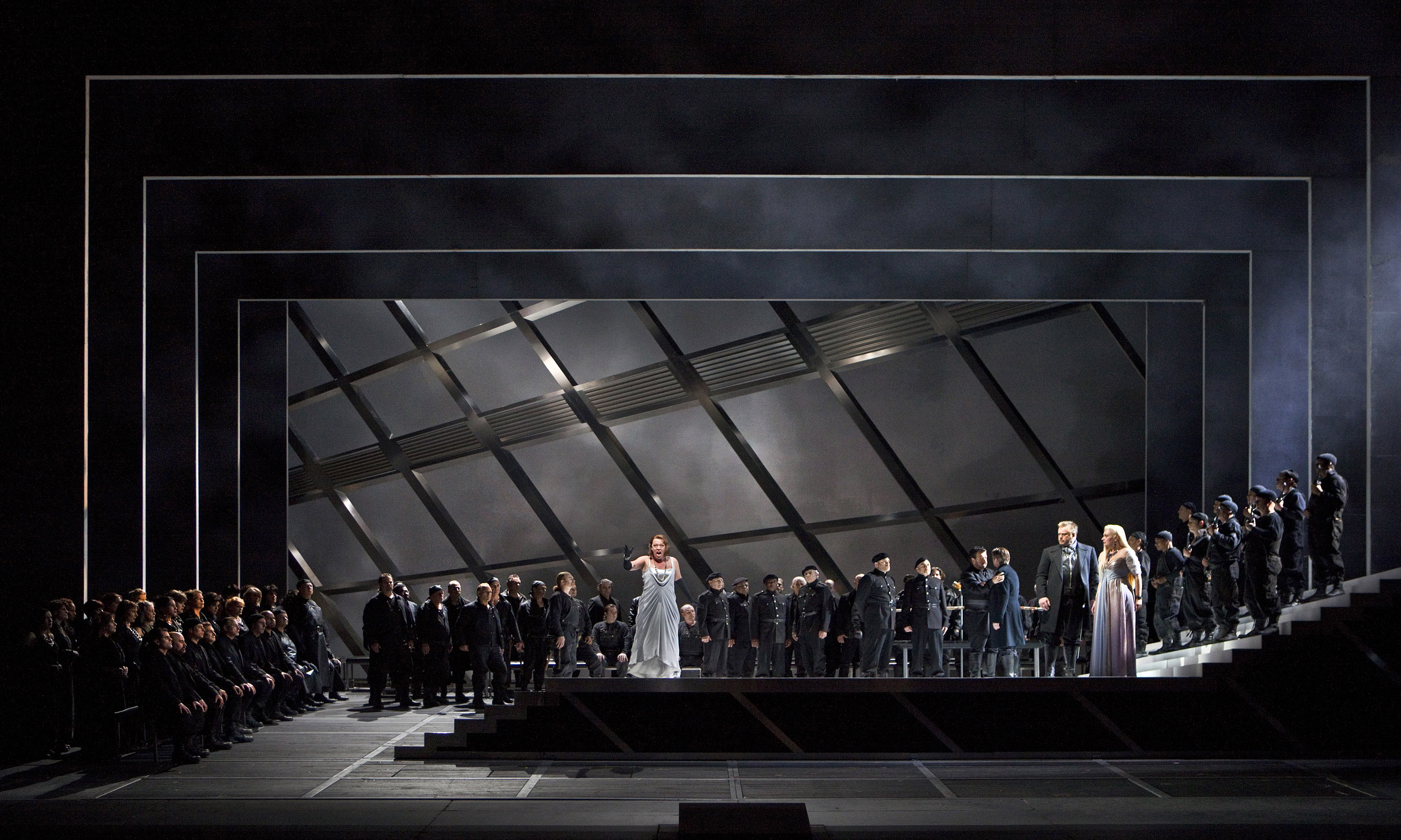 Gerd Grochowski played the consummate Gunther, plainly conveying the cowardice of the character. Andrea Silvestrelli (Hagen) was nearly faultless. He was brilliantly evil, and the texture of his voice worked to his advantage. His rich sound does seem to have an endless depth to it. Ian Storey (Siegfried) has some fine heft and volume to his voice, but he did sound somewhat sour. His control is somewhat imperfect, and he cracked at least one note in Act II. This said, his death scene was captivating. However, the obvious star of the performance was Nina Stemme as Brünnhilde. Her voice is powerful without being strained, her low notes have strength and warmth, and her high notes ring out with clarity.