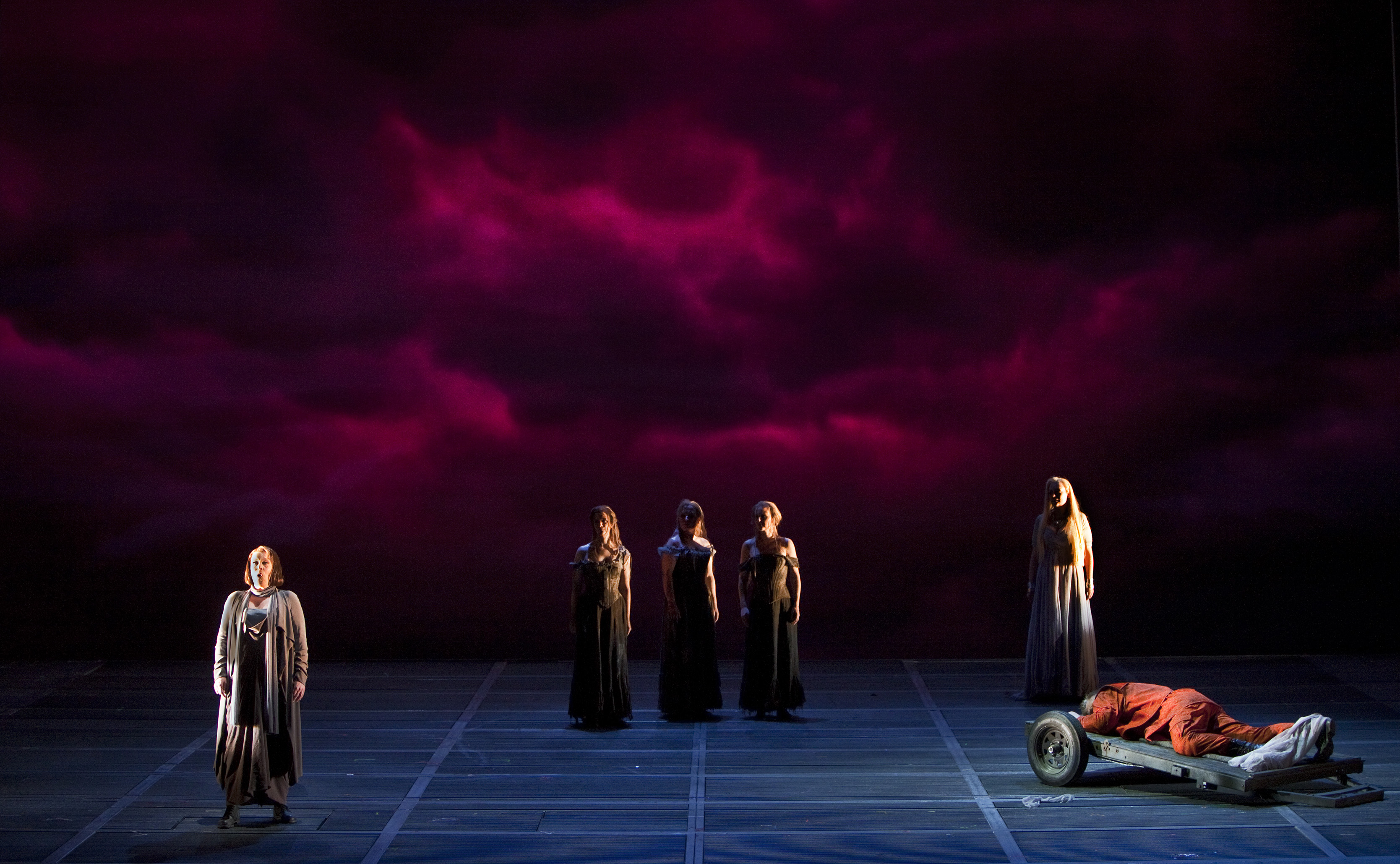 Here we have a photograph from Cory Weaver of the Act III, Scene 3 of San Francisco Opera’s Götterdämmerung with Nina Stemme (Brünnhilde), Stacey Tappan (Woglinde), Renee Tatum (Flosshilde), Lauren McNeese (Wellgunde), Melissa Citro (Gutrune), and Ian Storey (Siegfried). Sunday’s performance was impressive, and one looks forward to the 3 cycles in the next 3 weeks.