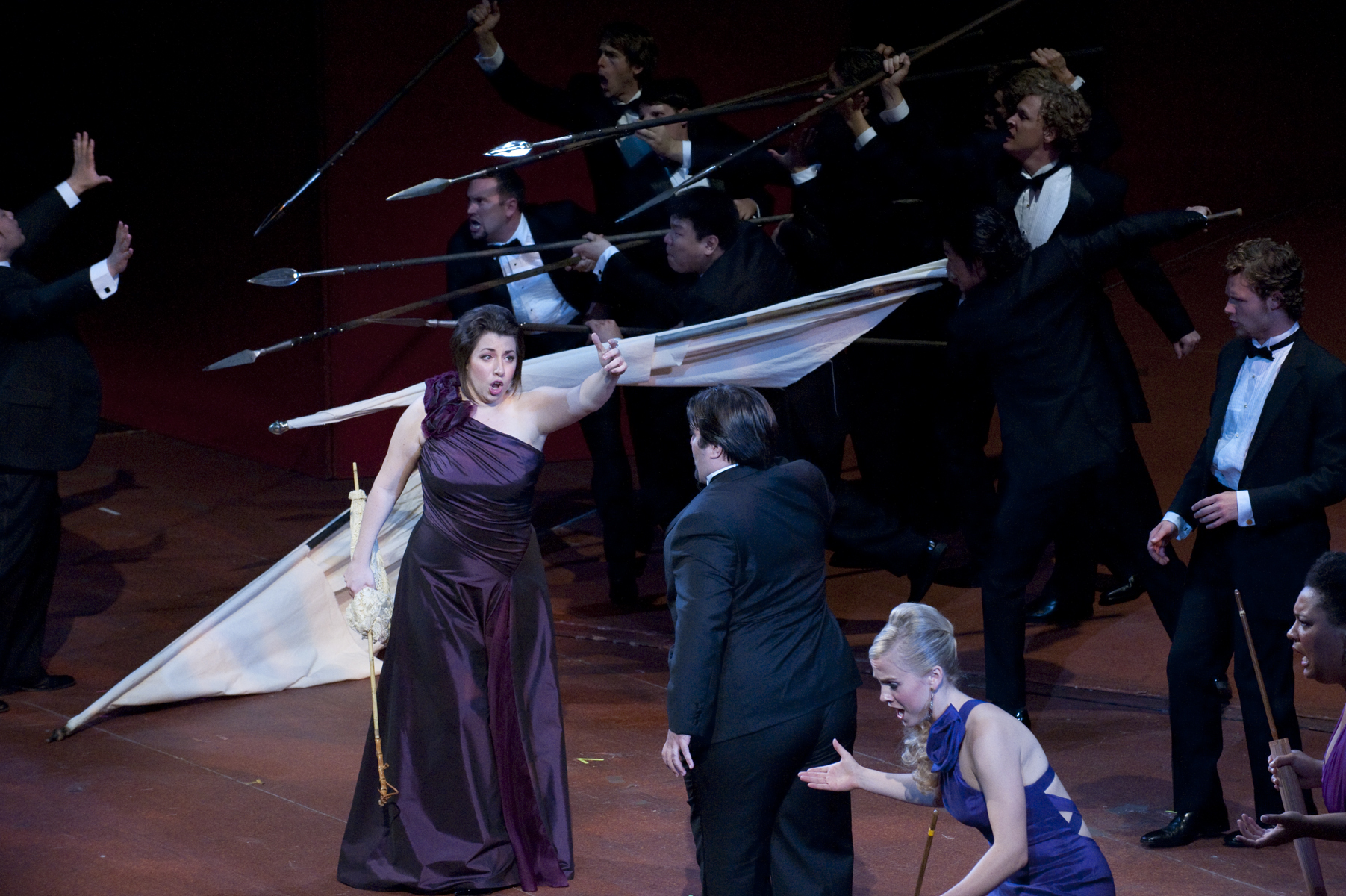 The Adler Fellows for 2012 are likely to be announced next month, so it is time to speculate on which Merolini (pictured left in the 2011 Grand Finale, photograph by Stefan Cohen) will return to San Francisco. Tamara Sanikidze will have completed her two years as an Adler this Fall, so we will get a new collaborative pianist. As for singers, the outgoing Adlers are sopranos Leah Crocetto, Susannah Biller, and Sara Gartland; mezzo-soprano Maya Lahyani; countertenor Ryan Belongie; and tenor Brian Jagde.
