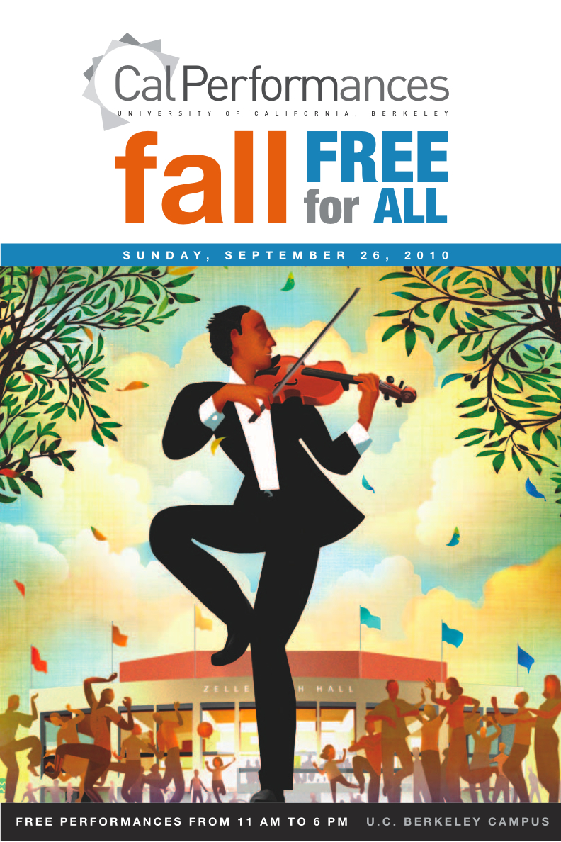 Cal Performances is holding a third Fall Free for All this Sunday, September 30th, from 11am to 6pm. Several student ensembles will be featured. Other participants include the Lily Cai Dance Company, the Cypress String Quartet, saxophonist George Brooks, Eth-Noh-Tec Storytelling, the Shotgun Players/Assassins, the Chitresh Das Dance Company, harpsichordist Davitt Moroney, Marcos Silva Brazilian Jazz, Kitka, storyteller Dianne Ferlatte, San Francisco Taiko Dojo, Gamelan Sekar Jaya, jazz and blues vocalist Pamela Rose, pianist Shai Wosner, shadow puppeteer Daniel Barash, and the Kronos Quartet.