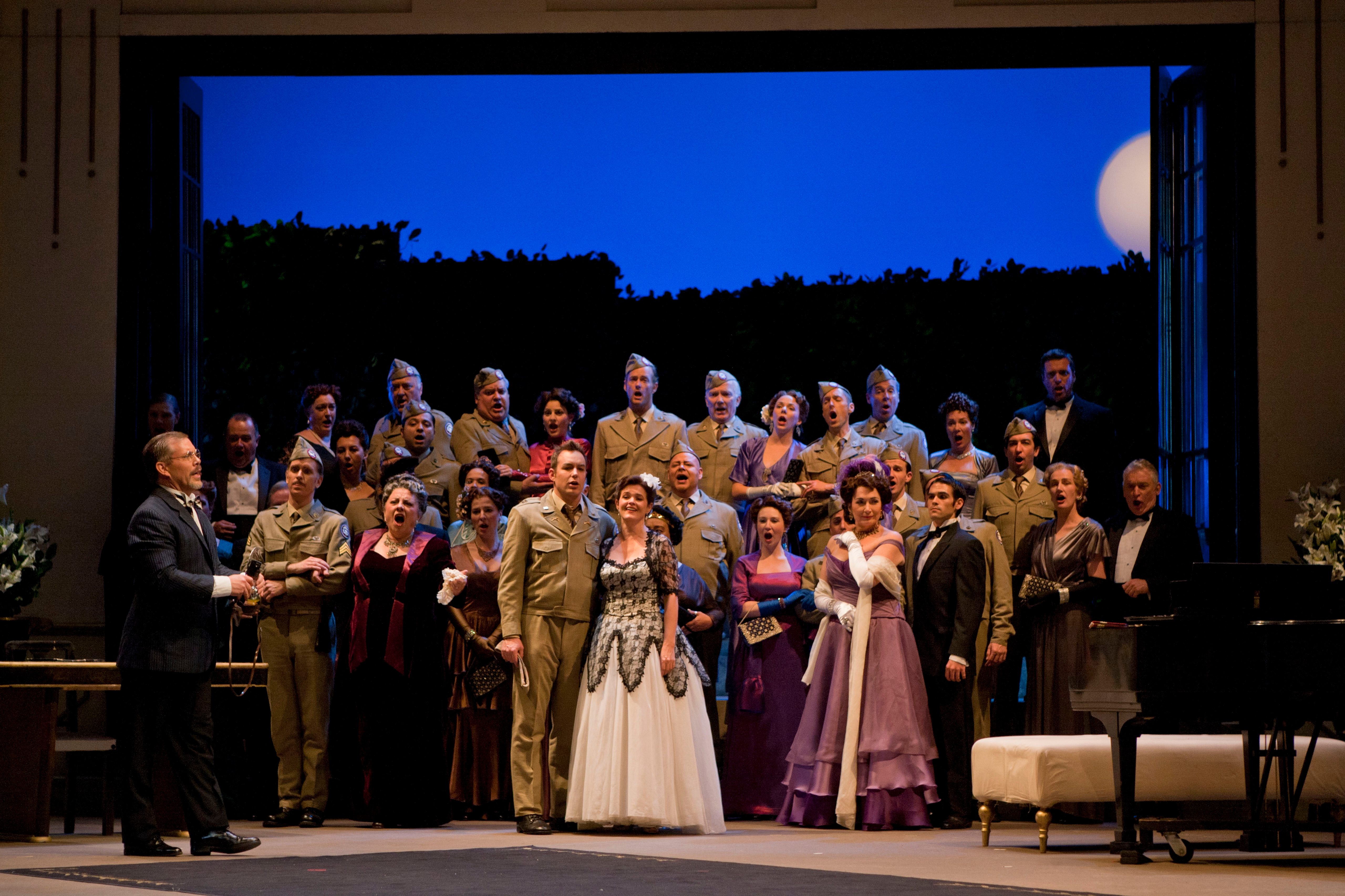 San Diego Opera's 2013 season opened with La fille du régiment last night. The production, directed by Emilio Sagi, is set in France during the final days of World War II, rather than in 19th century Swiss Tyrol. This made the sung or spoken text go against the super-titles at times. Otherwise, Sagi seems rather detail oriented, it seemed that all the scenes were rife with activity. The audience appreciated the sight gags and various jokes interpolated in the dialogue.