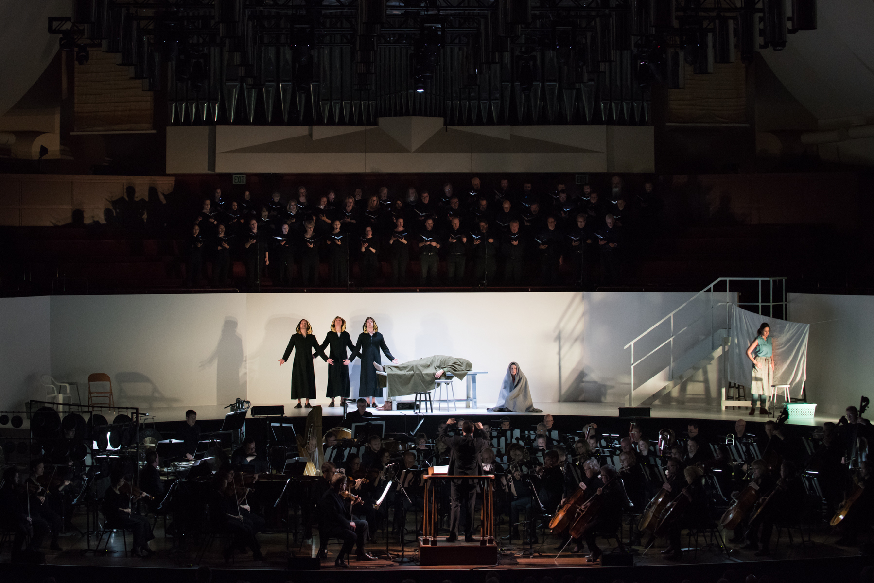 Last weekend San Francisco Symphony continued celebrations for John Adams' 70th birthday with The Gospel According to the Other Mary. The oratorio was tastefully semi-staged (Daniel Bubeck, Brian Cummings, Nathan Medley, Jay Hunter Morris, Kelley O'Connor, and Tamara Mumford pictured left; photograph by Stefan Cohen) and featured a truly resplendent cast.