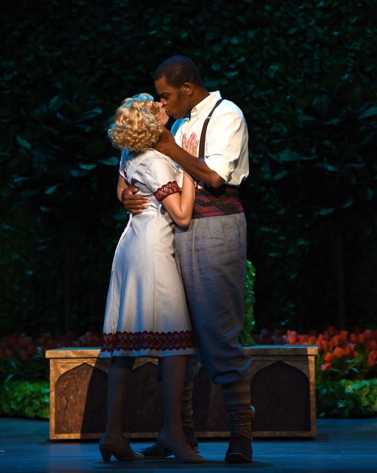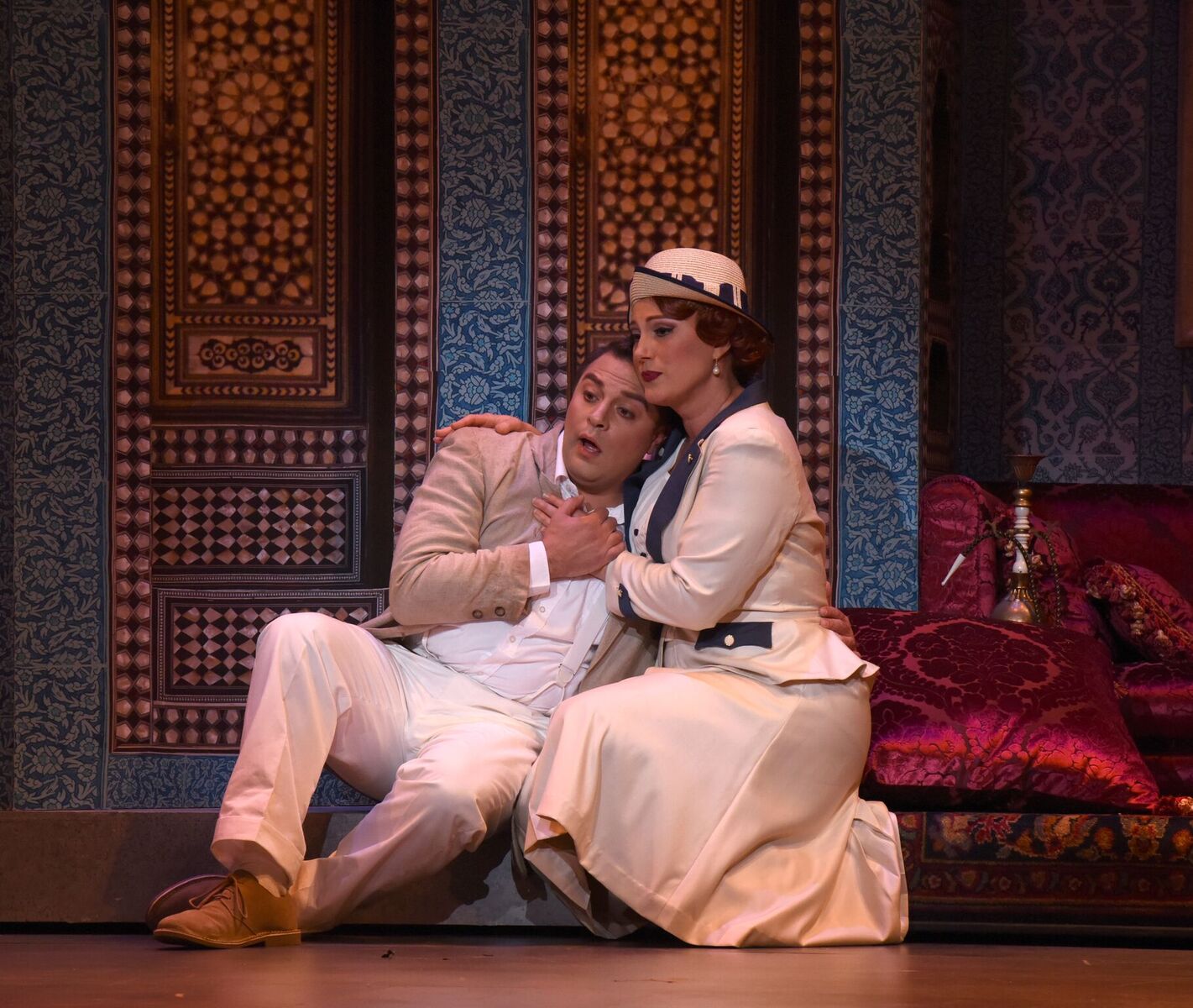A winsome cast (Matthew Grills as Belmonte and Rebecca Davis as Konstanze pictured, photograph by Pat Kirk) opened the Opera San José 2018-2019 season with the delightful music of Die Entführung aus dem Serail yesterday night. Mozart's jaunty Singspiel is a joy to experience with the young soloists, the sprightly orchestra, and gorgeous set, despite the muddled staging.