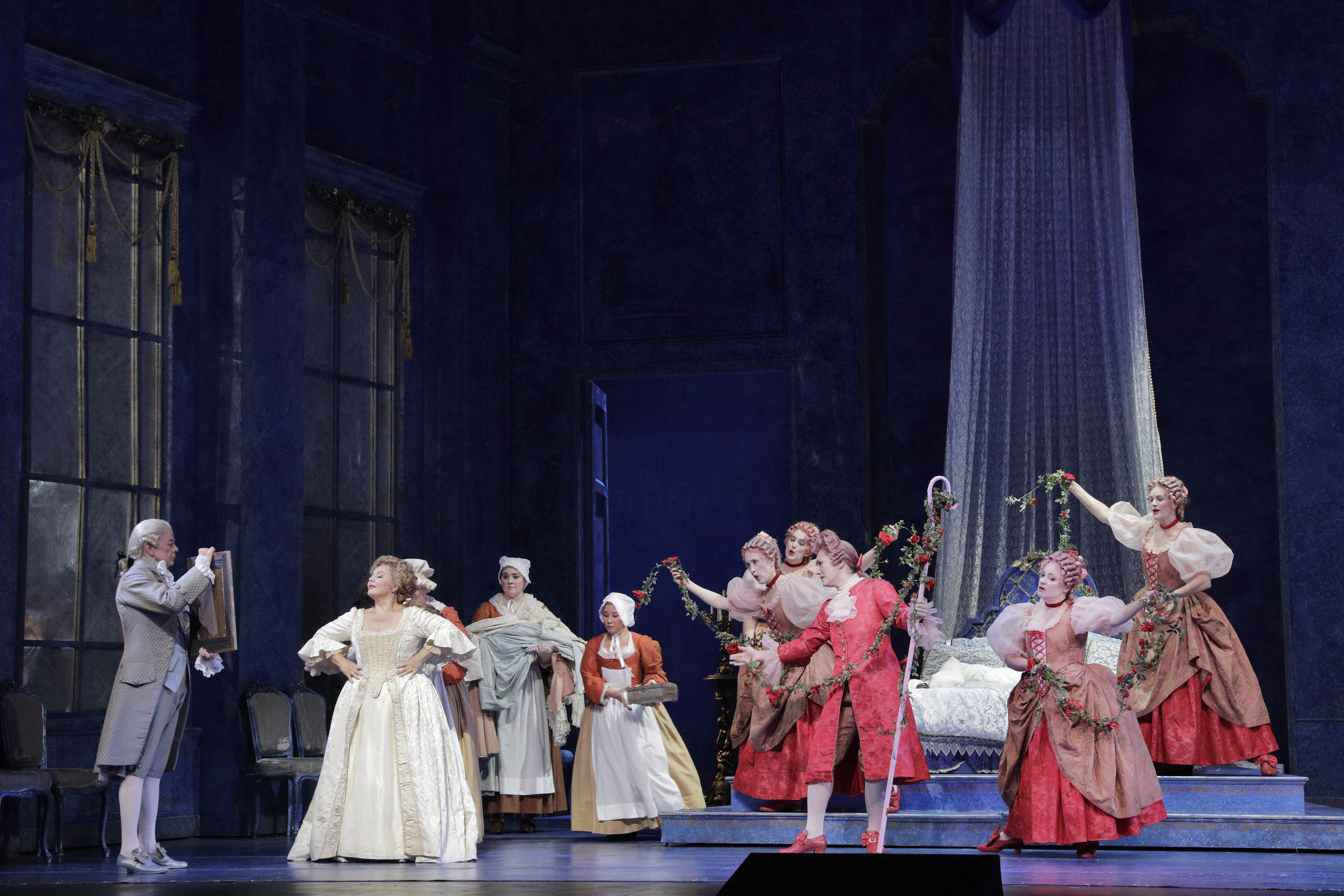 My main memory of this production way back in 2006 is of Karita Mattila in the title role doing the splits in a very blue room. Soprano Lianna Haroutounian (pictured in Act II, photograph by Cory Weaver) is a more convincing Manon, her lack of splits notwithstanding. Her voice is passionate, she has a tendency to be sharp, but it isn't much of an issue unless she's singing a duet.