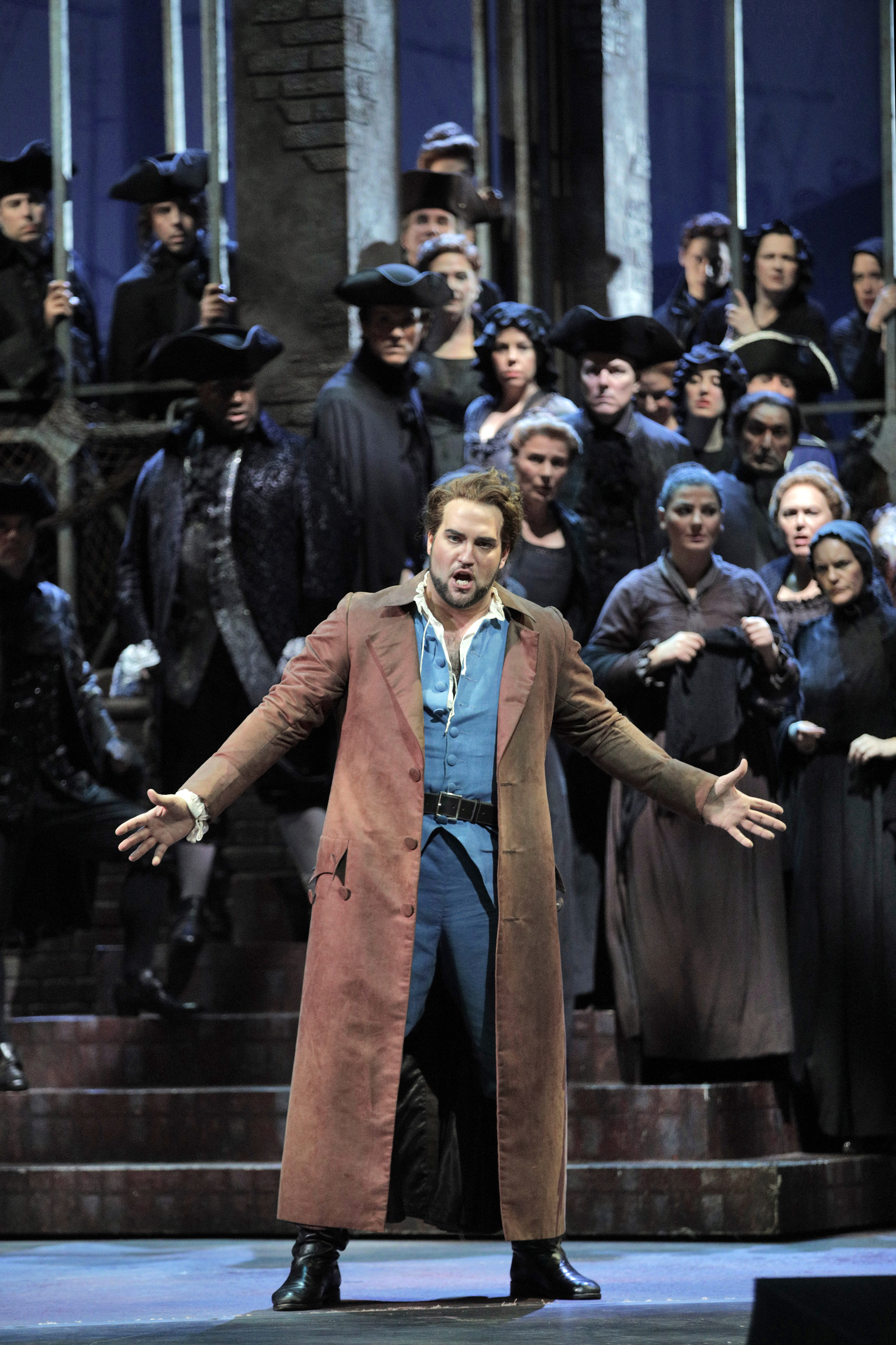 Tenor Brian Jagde (pictured in Act III, photograph by Cory Weaver) is a dashing Chevalier des Grieux, his powerful voice can always be heard over the very bold and propulsive sound of the orchestra. Baritone Anthony Clark Evans as Lescaut was a touch quiet in Act I, overwhelmed by both orchestra and chorus, but was certainly audible in the rest of the opera, while bass-baritone Philip Skinner is a vivid villain as Geronte de Revoir. The latter's sturdy voice and fine acting won him boos during the final ovation.