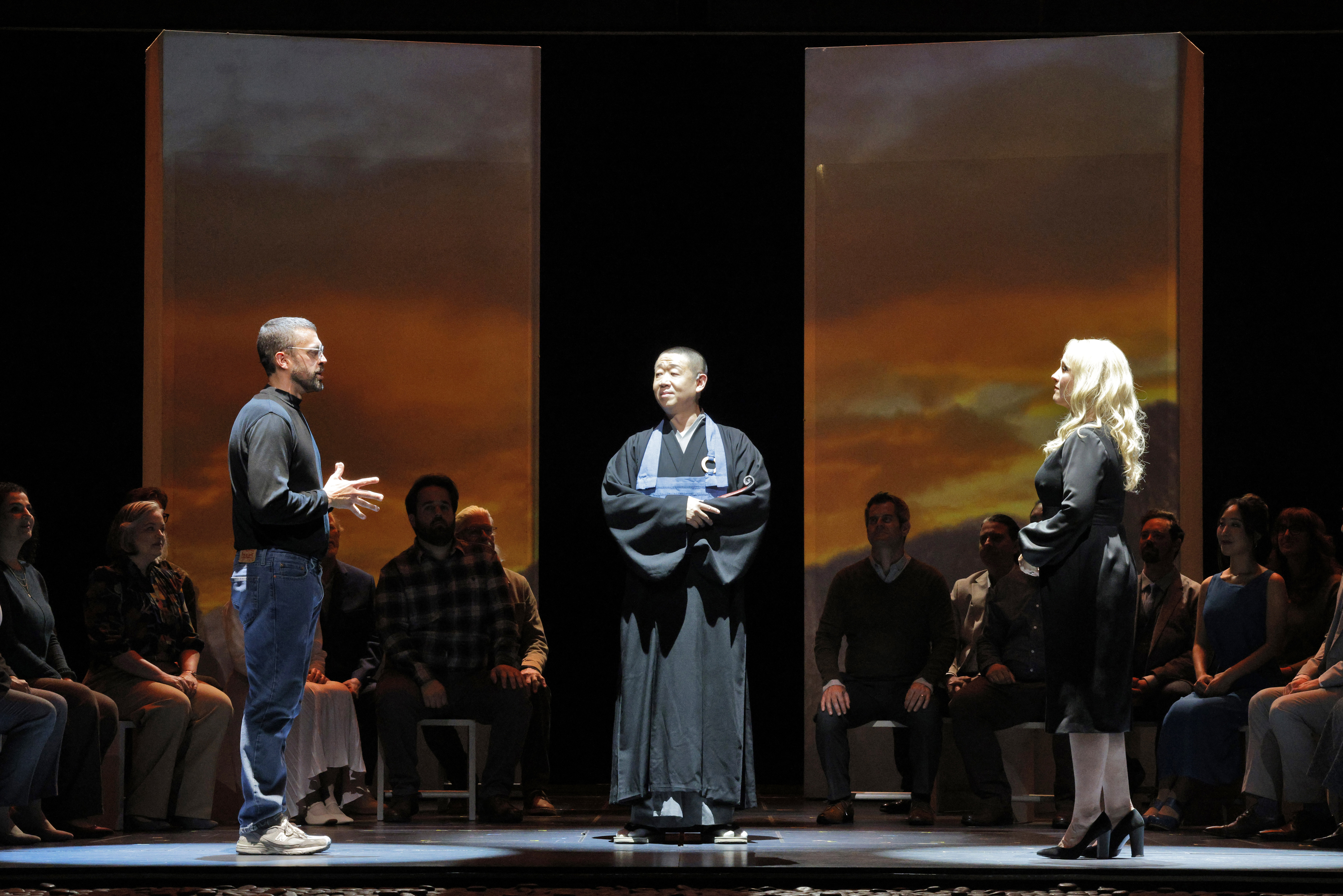 Baritone John Moore also has a bright, resonant voice, portraying Steve Jobs as a cruel megalomanic and a vulnerable human being. His interactions with bass Wei Wu (Kobun Chino Otogawa) and mezzo-soprano Sasha Cooke (Laurene Powell Jobs) were best. Wu had the most entertaining lines as the Zen priest and spiritual mentor of Jobs, though Moore has a pretty good one about Bach and mosquitos in Scene 10. Cooke was radiant, her voice is ethereal but well-supported.