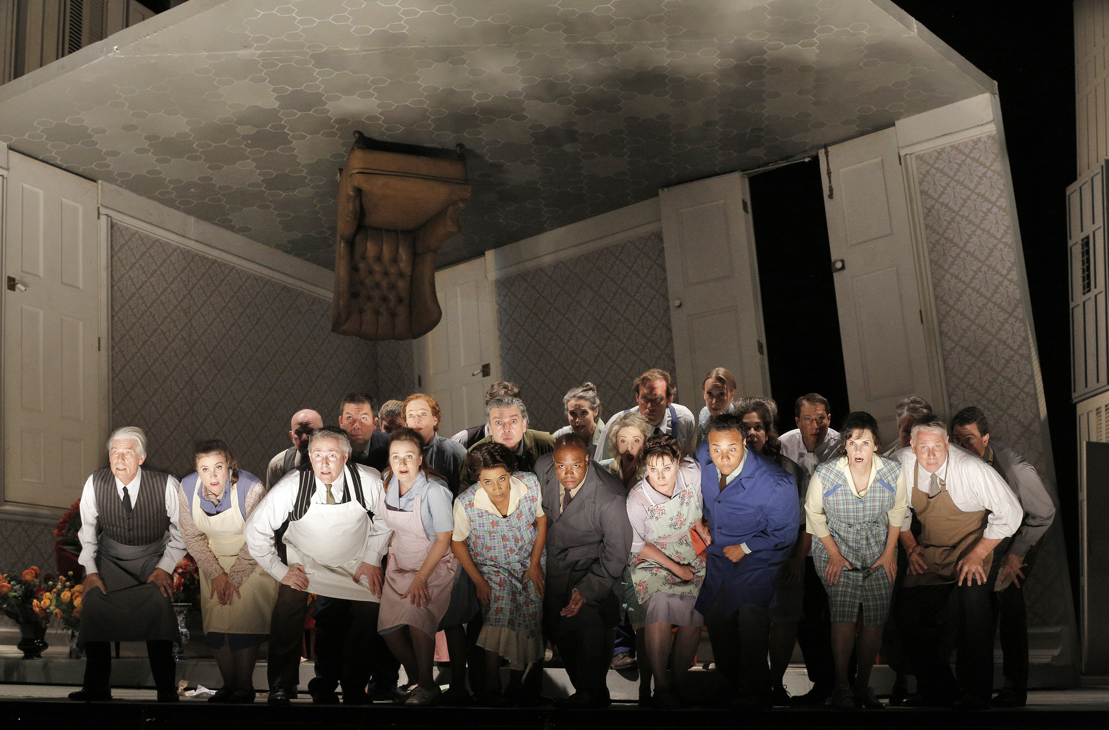 Mezzo-soprano Daniela Mack (Rosina) and tenor Alek Shrader (Almaviva) are adorable little lovebirds on and off stage, and their voices are both well-suited to Rossini. Mack is visibly pregnant, and I felt exhausted for her, but she sang with vivid lightness and warmth throughout. Baritone Lucas Meachem is also completely perfect in the title role, his personable Figaro has a lot of appeal. The diction throughout the performance was clear from everyone, and I did not have to read the supertitles at all.