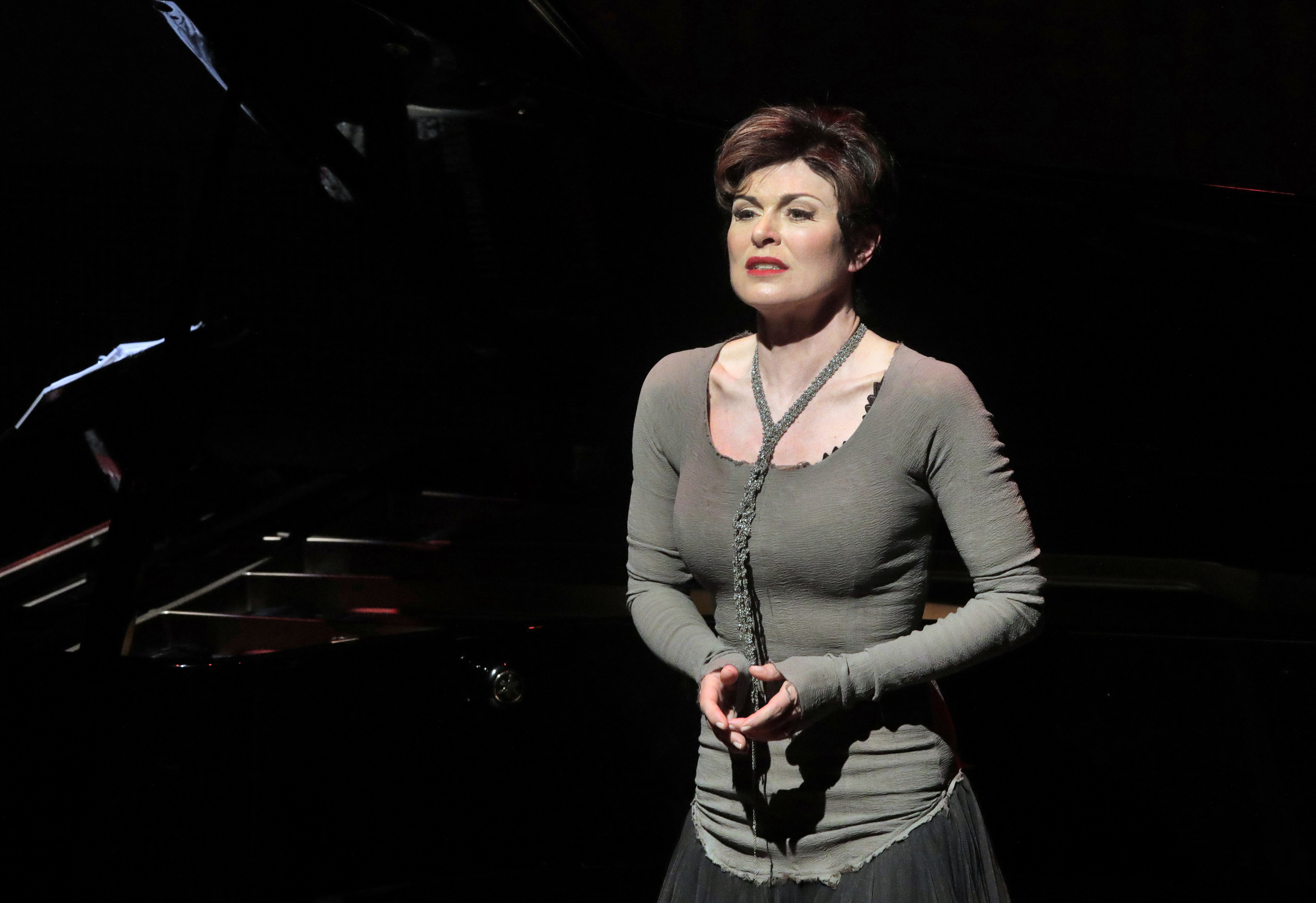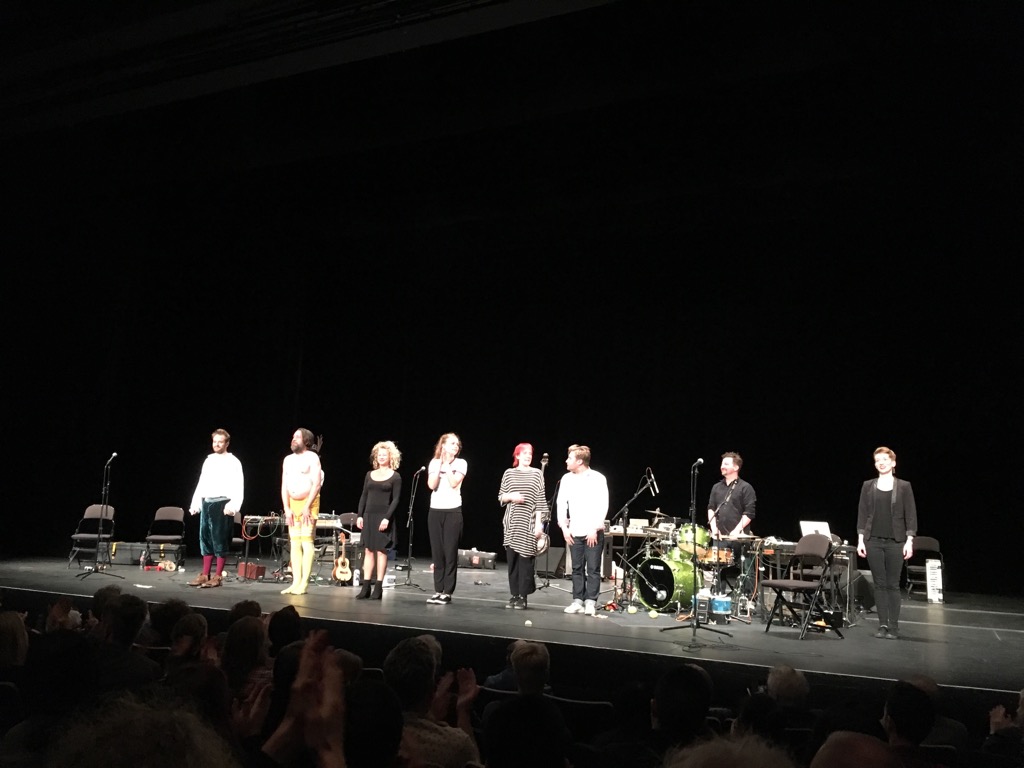 The staging was simple, a projection of a neon bar sign, a bar, a karaoke stage, a couple of tables and chairs, and of course the piano upstage played by John Churchwell. Clocking in at an hour, with no intermission, it was a quick and engaging evening. The pieces went together nicely and the young singers gamely played their roles.
